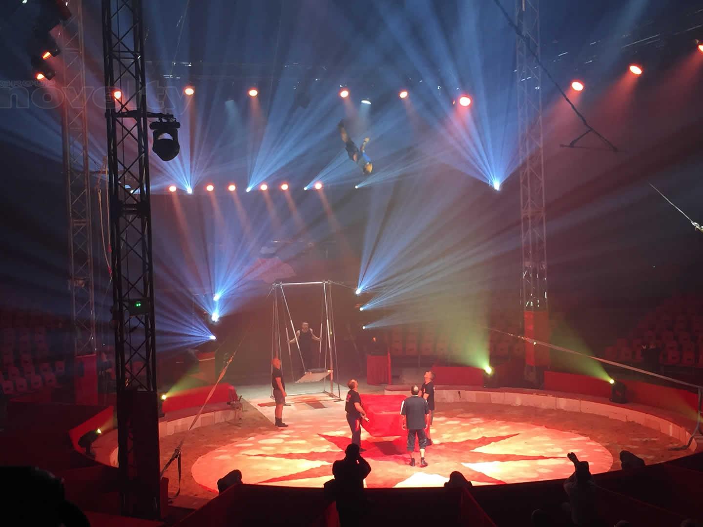 Pour cette édition, le Cirque du Val d’Oise a fait appel à Novelty Benelux qui a fait le déplacement pour la mise en place de l’éclairage, la sonorisation et la structure.