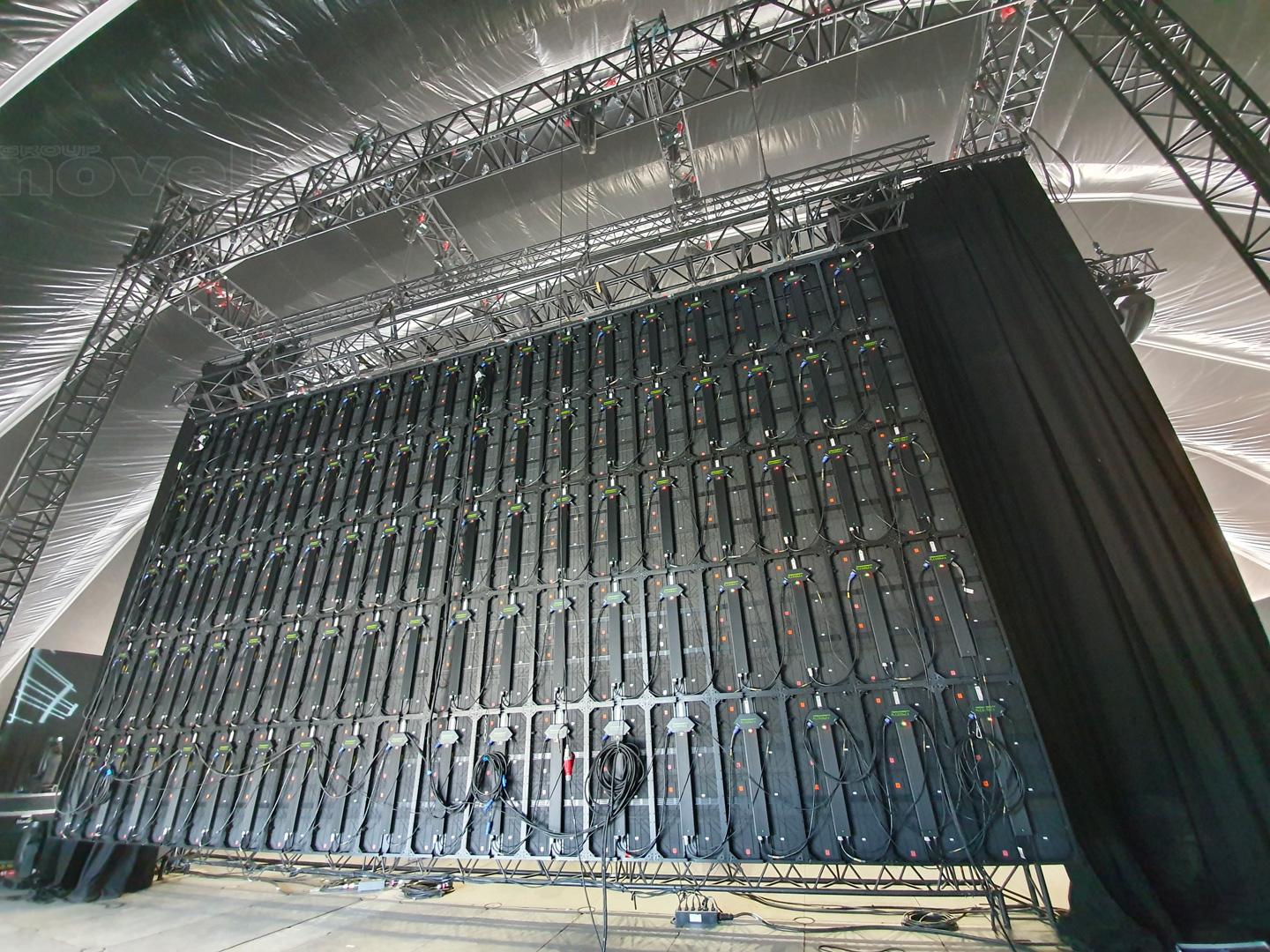 Pour Novelty Benelux, cette prestation représente un total de 27 techniciens vidéo, son, éclairage, structure qui se sont relayés sur ces deux scènes mythiques pour une durée d'une semaine.