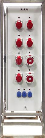 Armoire de distribution sur pied. Entrée : Bornier. Sorties : 5 x P17 125tri + 2 x P17 63tri + 6 x P17 32tri + 3 x PC16A. Protection différentielle 30mA. Dé-classable en 400A