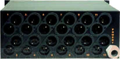 Bloc de puissance 12 x 3kW. Entrée : P17 63tri. Sorties : 12 x 2 PC16A