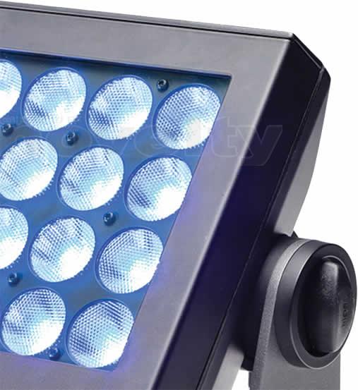 The low-profile fixed, rectangular, full-color LED wash light incorporates 44 x RGBW 10W LEDs. Combined with a small footprint, the power consumption is reduced to just 420W while the LED source life expectancy is 50,000 hours.