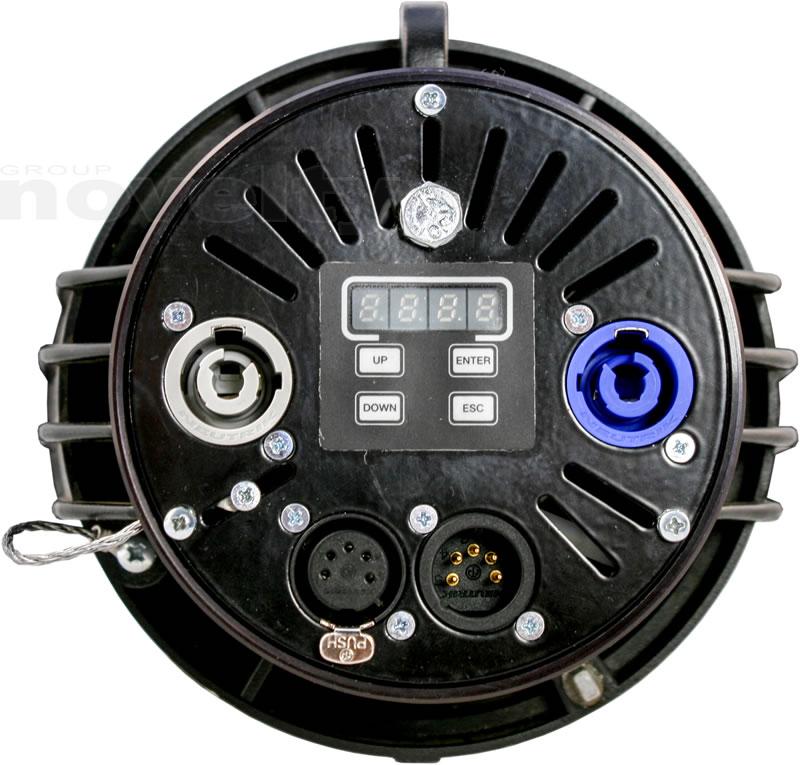 The HPLed  is powered by an high power Light Emitting Diode Array with a standard colour temperature of 4000°K. HPLed incorporates a  display board  to operate the fixture via RDM and or DMX Protocols. The rear section of the RDM/DMX HPLed embeds functions to  facilitate fixture operations,  such as convenient  IN/OUT 5-pin XLR and PowerCon connectors.