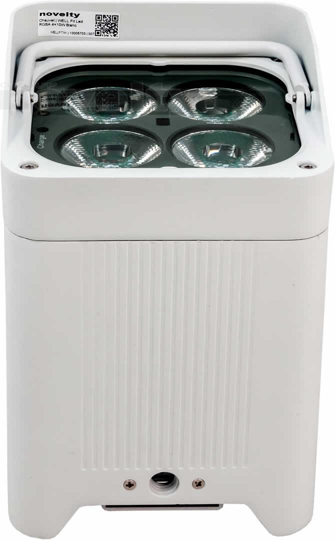 Projecteur LEDs blanc (4xRGBW de 10W), ouverture 11-18°, sur batterie (autonomie 8 à 20h) pilotable via DMX, HF, pied inclinable