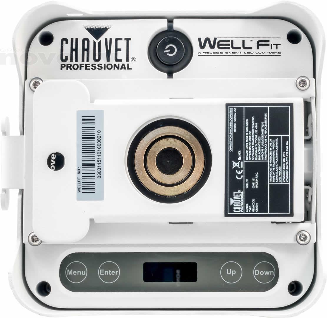WELL Fit is a must for event lighting. A discrete, high powered LED up-lighter, this small battery powered wash light comes in a reflective chrome housing designed to blend into any décor. WELL Fit can be controlled wirelessly either by W-DMX or by an included IR remote; alternatively, it can be controlled manually from the OLED display on the fixture. All of these features combined make the WELL Fit a perfect solution for quick setup and distinguished accent lighting.Chrome exterior for blending into its surroundings.