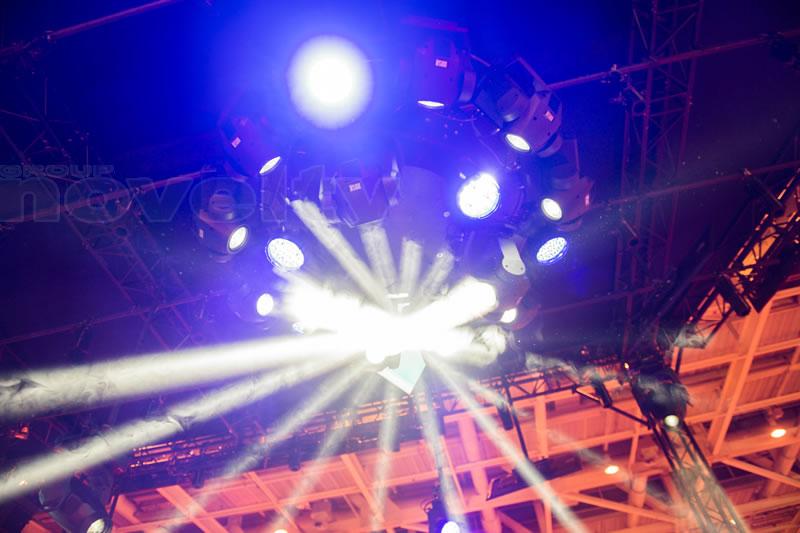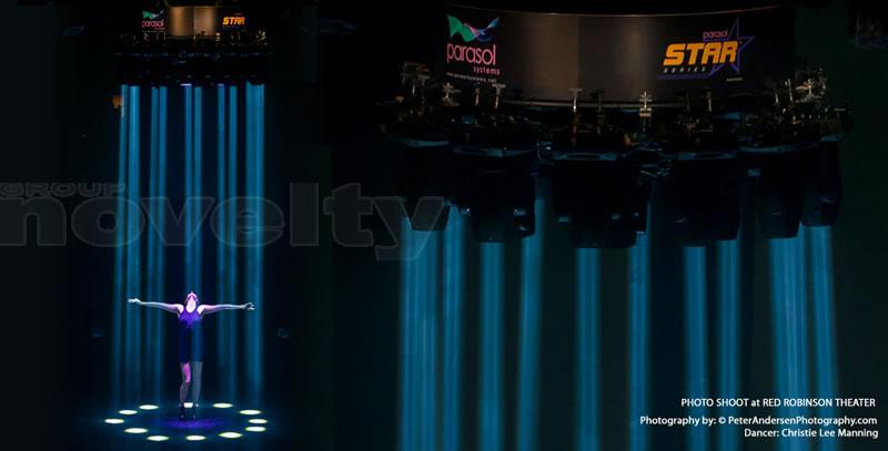 Double cerce motorisée, Ø183cm & Ø108cm, pour 18 projecteurs asservis.