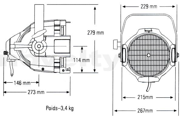 PAR Source 4, verres diffusants, 575W, différents faisceaux : VNSP/NSP/MFL/WFL, livré avec porte-filtre, crochet, élingue de sécurité, jeux de lentilles.