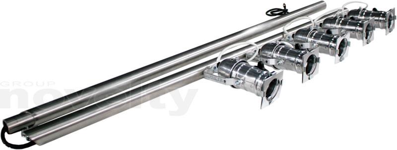Set de 4 mâts LED chromés, 5 PAR16 par mât, sur secteur 220v