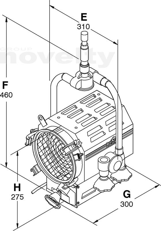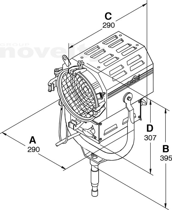 - Compact, highly efficient Fresnel lens spotlight using tungsten-quartz-halogen filament lamps having G22 socket, L.C.L. of 63,5 mm. and max. 1,2 kW power .