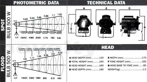 Lampes : tungstène halogène 300W (CP81) ou 500W (Cp82), douille GY9,5LENTILLE : Fresnel ø80 mm