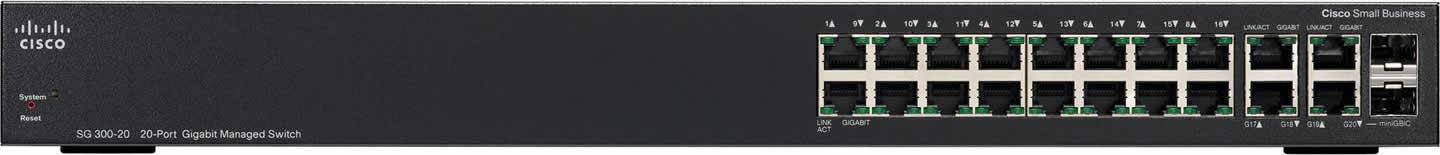 The Cisco SG300-20 switch offers the reliable performance, investment protection and peace of mind you expect from a Cisco switch. When you invest in the Cisco SG300-20 switch, you gain the benefit of: