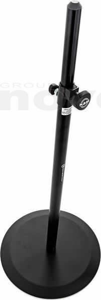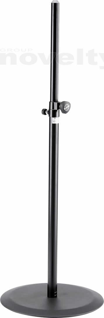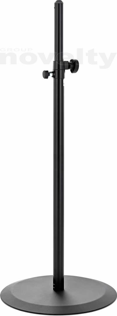 Pied d'enceinte en acier constitué d’une embase ronde fine de diamètre 450 mm sur laquelle un tube réglable (1080-1780mm) doit venir se visser délicatement. Le tube comporte un diamètre de 35 mm permettant d’y asseoir une enceinte type PS8/8XT etc...