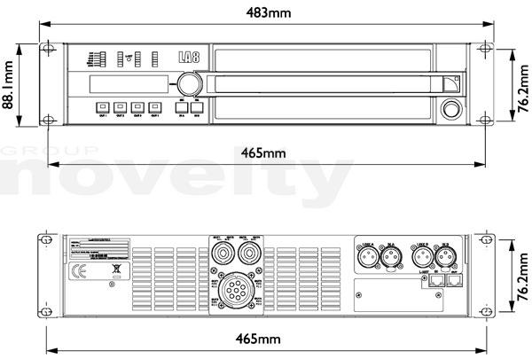 Le contrôleur amplifié L-ACOUSTICS® LA8 représente le haut de gamme des contrôleurs amplifiés intégralement dédiés à l’exploitation des systèmes L-ACOUSTICS®. Le LA8 regroupe dans un format 2U les ressources d’un DSP à deux entrées et 4 sorties, 4 canaux d’amplification délivrant jusqu’à 1800 W chacun sous 4 ohms, le stockage de presets dans 99 zones mémoire flash, une interface utilisateur intuitive et complète, une connexion Ethernet® pour pilotage en réseau, un panneau de connexion pour les entrées audio-analogiques, la carte LA-AES3 pour l’entrée des signaux audionumériques, et les sorties haut-parleurs. Pour plus de détails, se référer au Manuel utilisateur LA8