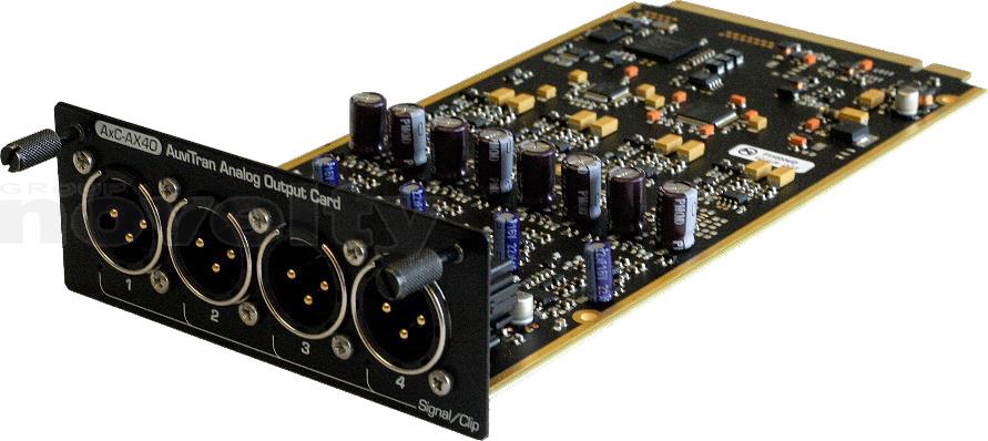 Dotées de 4 sorties analogiques de haute qualité et de connecteurs XLR, l’AxC-AX4o offre une parfaite combinaison entre des convertisseurs analogiques-numériques de haute performance et un design intelligent et optimisé, le tout au format d’une carte AxC pour répondre sans compromis aux applications professionnelles « Live », fixes et haut de gamme.Grâce à un design intelligent réduisant les bruits au démarrage et à la coupure, l’AxC-AX4o répond parfaitement aux contraintes des systèmes de sonorisation professionnelle.