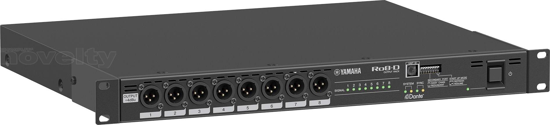 The Yamaha RO8-D is a Dante-compatible Output rack, featuring 8 analog outputs - 1RU.