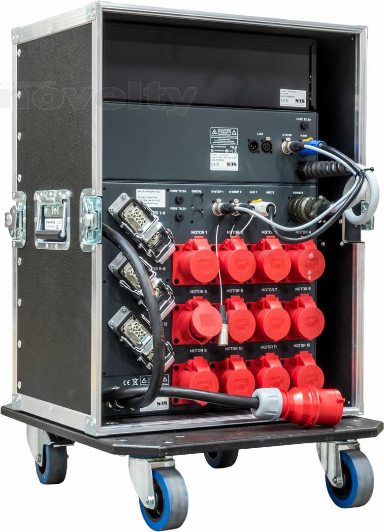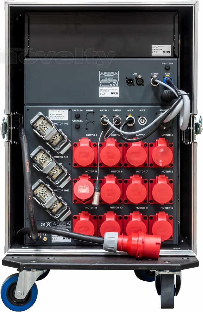Le système est conçu de façon modulaire afin d'apporter une réponse abordable et des branchements simples et peut ainsi commander de 8 à 128 canaux. Le TRS-WMC12 peut être équipés en tension direct ou basse tension et d’un capteur de mesure pour le suivi de la charge des structures.Chaque système est conçu "plug and play" / branchez et utilisez directement. Des boites de jonctions sont fournis et intégrées au couvercle, l’ensemble est protégé par sa boite de transport type flight case . Il est possible de rajouter une lecture de charge et système de d’arrêt urgence. Un tiroir de rangement est ajouté à l’ensemble.
