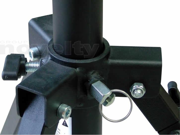 Pied acier, hauteur 1,60m à 3,00m, charge maxi 70kg. Livré avec tourelle