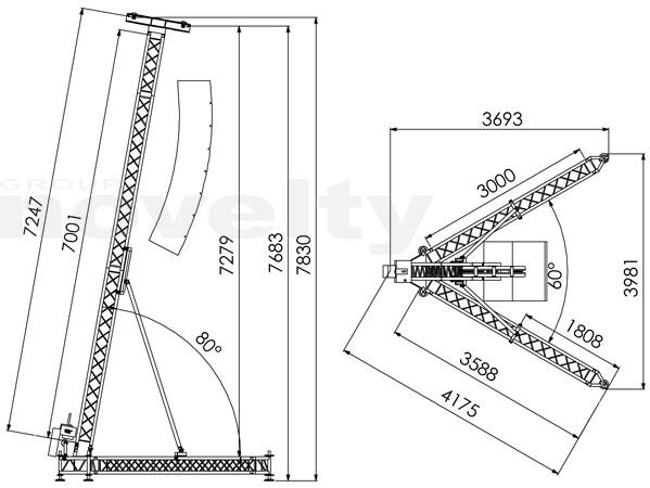 Tour cluster de son, haut. maxi = 7, 83m, charge maxi = 500kg