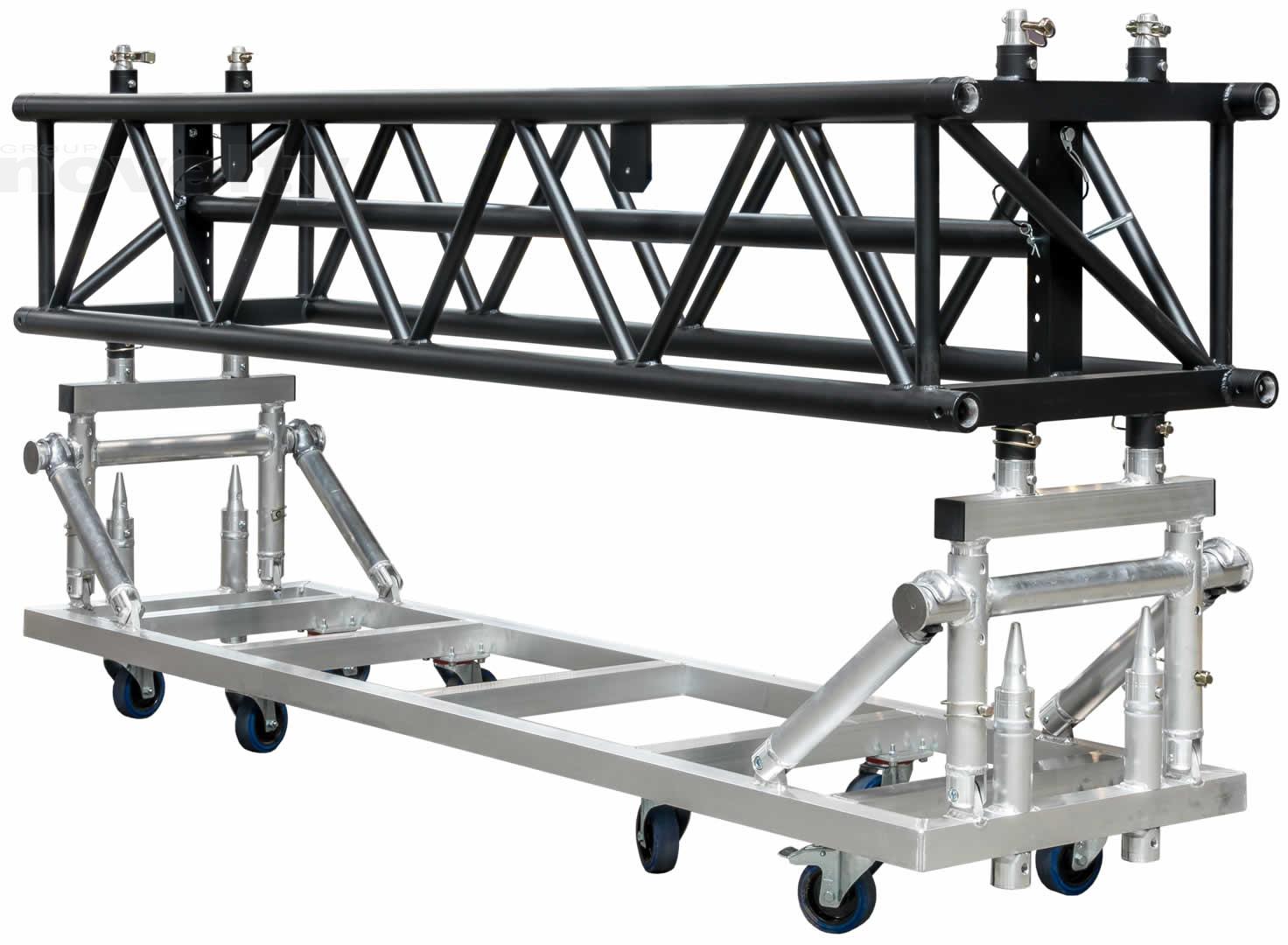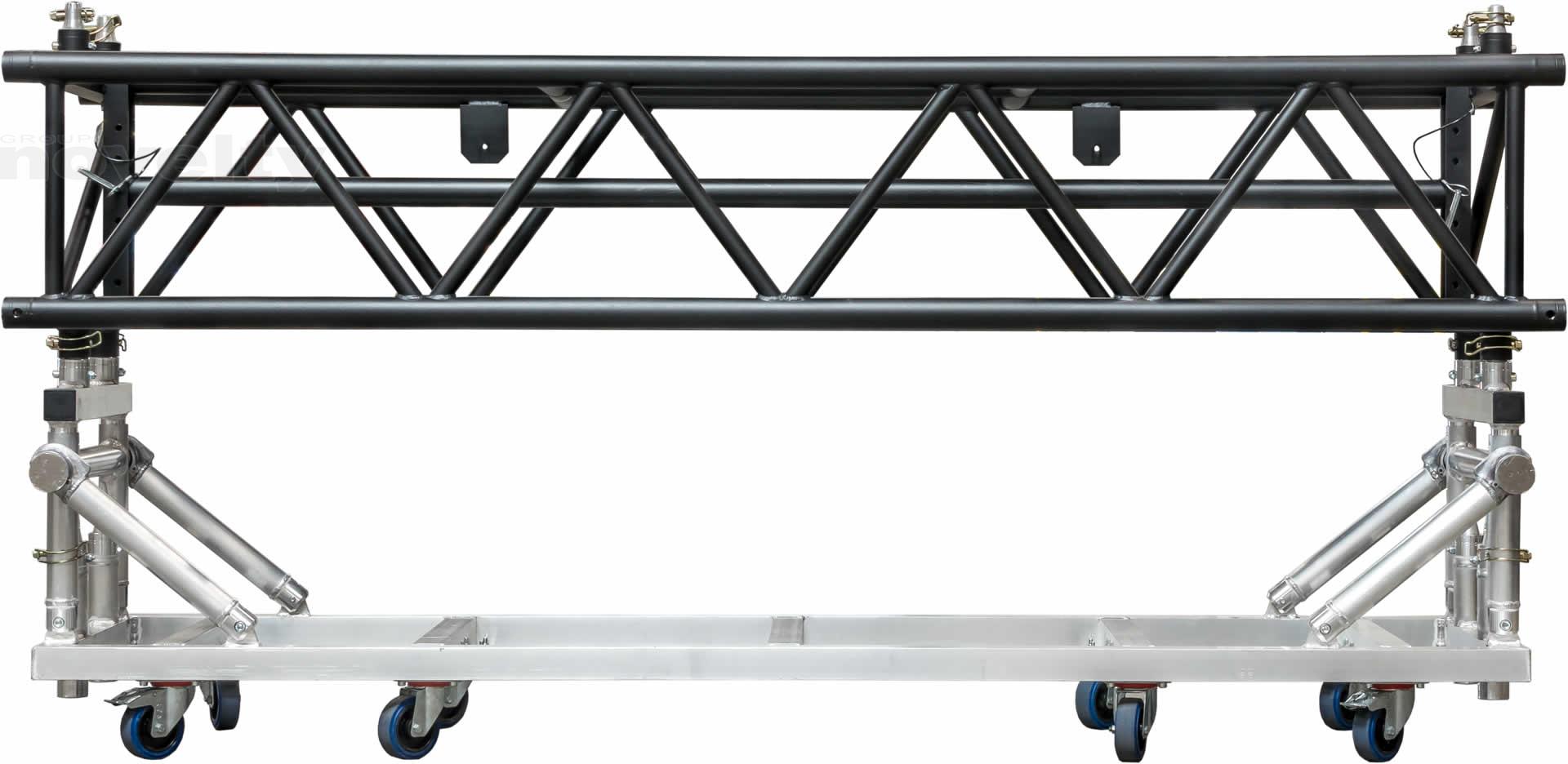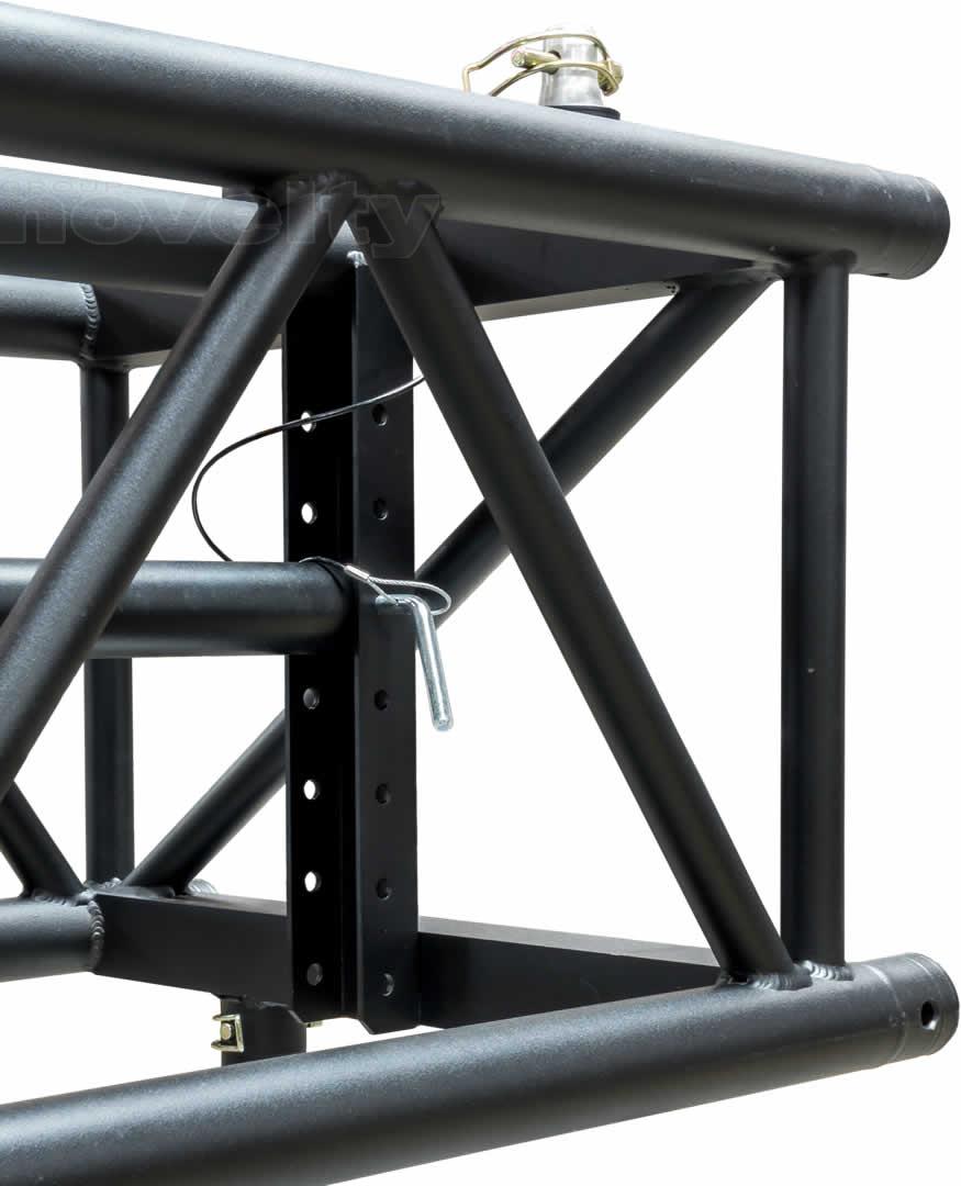 Poutre de 2,40m, section 60x43, 1 tube réglable au centre sur la hauteur, noir (équipée de 4 manchons + 8 goupilles/sécus).