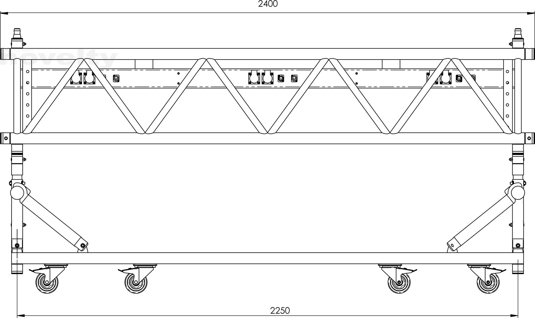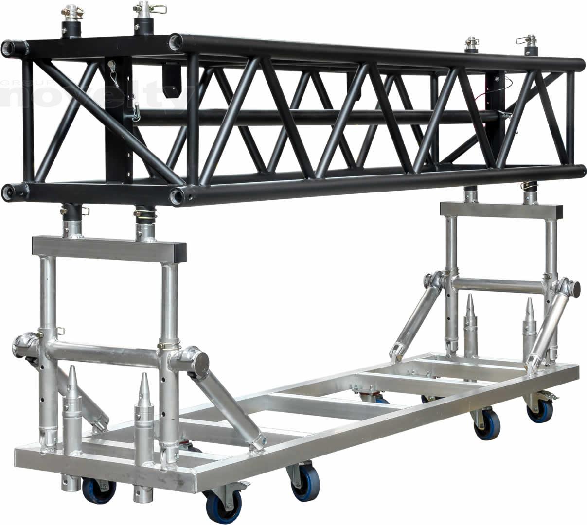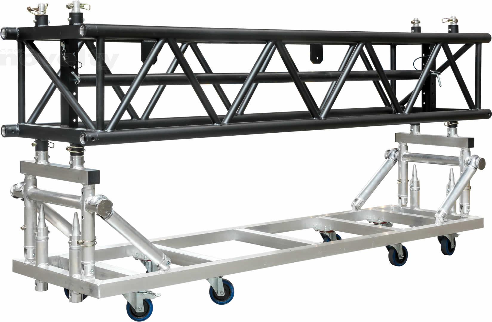 Poutre de 2,40m, section 60x43, 1 tube réglable au centre sur la hauteur, noir (équipée de 4 manchons + 8 goupilles/sécus).