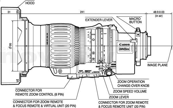 • Object Dimensions at M.O.D. : 16:9 Aspect Ratio (9.59 x 5.39mm) = 71.4 x 40.2cm at 4.7mm / 6.2 x 3.5cm at 52mm