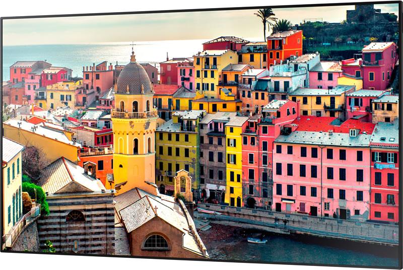 Maintaining consistent color across multiple displays becomes easier for businesses with UED Series displays. The displays undergo a meticulous factory color calibration process, ensuring accurate color without image distortion and without the need for manual calibration. The improved factory color tuning for white balancing and color difference compensation ensure that the displays present images in uniform color with color temperature matching.