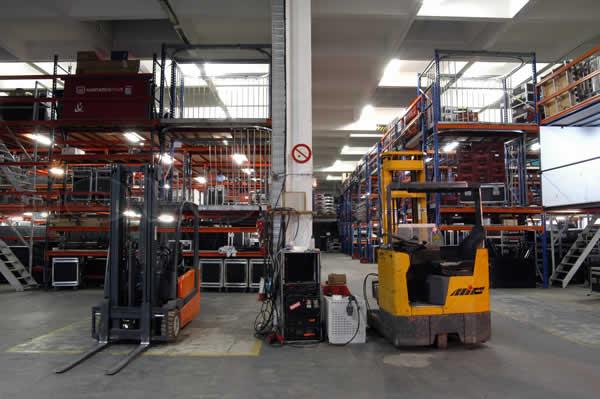 Depuis début Octobre nous avons augmenté notre surface de stockage et préparation de matériel de 30%. Nos locaux (production + administratifs) sont ainsi passé de 3400 à 4000m2. Principaux bénéfices : un parc de matériel structure mieux organisé, et une vaste zone de préparation et retour de matériel donnant de l'air à l'ensemble du stock. L'accueil se situe toujours au 12 rue de Longjumeau, les locaux, eux, s'étendent du 10 au 16 rue de Longjumeau.