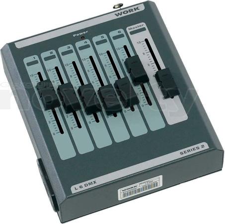 - DMX console able to control up to 6 channels. It allows to connect an external power supply of 9 V DC o to operate with the built-in battery. It disposes of DMX polarity switch.
