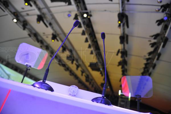 Set de 2 x microphones statiques "col de cygne" pour pupitre, livrés avec embases